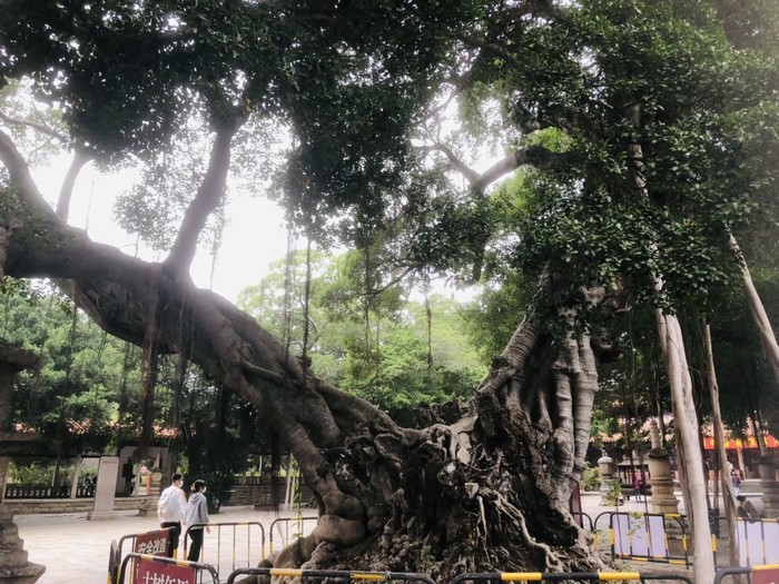 寺庙前拜庭面积很大,左右种了榕树根深叶茂,最古老的一棵已有八百年。开元寺有东西双塔。西塔称仁寿塔东塔称镇国塔。双塔经历明万历泉州大地震还屹立不倒。