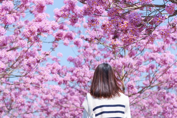 拍摄技巧: 仰拍,可以拍出霸屏粉花风铃木