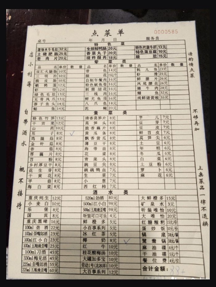 凉拌鸡、莲白粉条、秘制鸡汤、沸腾鱼。178块钱!