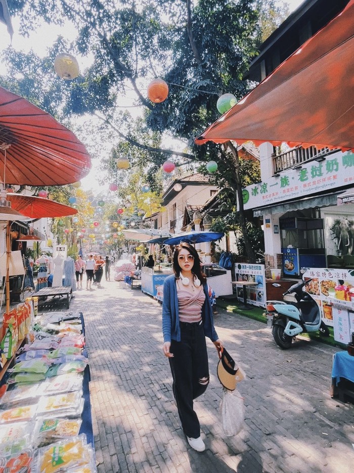 一条很长很长很窄很窄的街,有卖傣服,烧烤,凉拌,还有各种商业街能看到的小摊基本都有,因为今天走的太累了我们逛了会就走了,很热闹但不太喜欢这种拥挤。