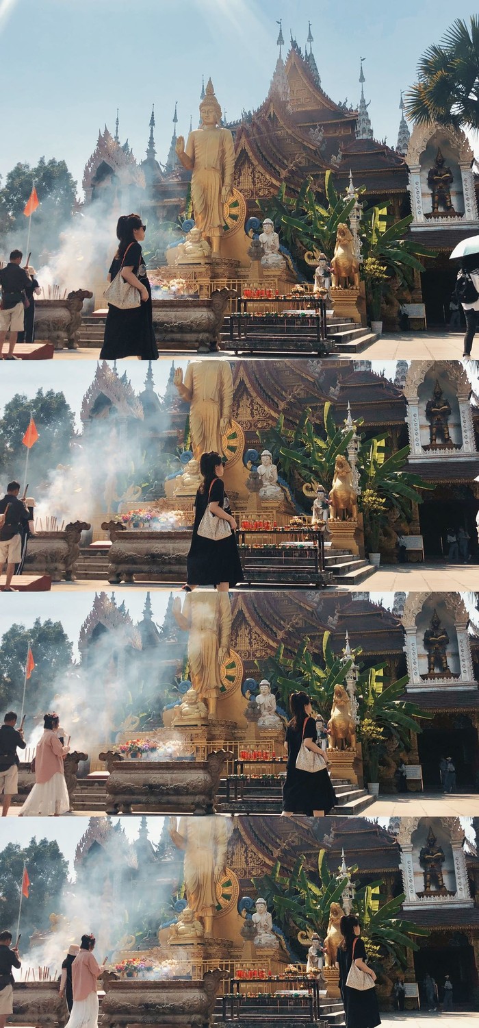 曼听公园门票包含总佛寺门票,如果拿纸质门票一定要保管好门票,因为从总佛寺回去曼听公园的时候要验票。进入总佛寺不能穿暴露的衣服,穿着傣装的小姐姐需要穿一件外套才能进去,里面不能商拍、旅拍或者婚纱摄影,自由行拍拍还是可以的,寺庙确实是个出片的好地方。