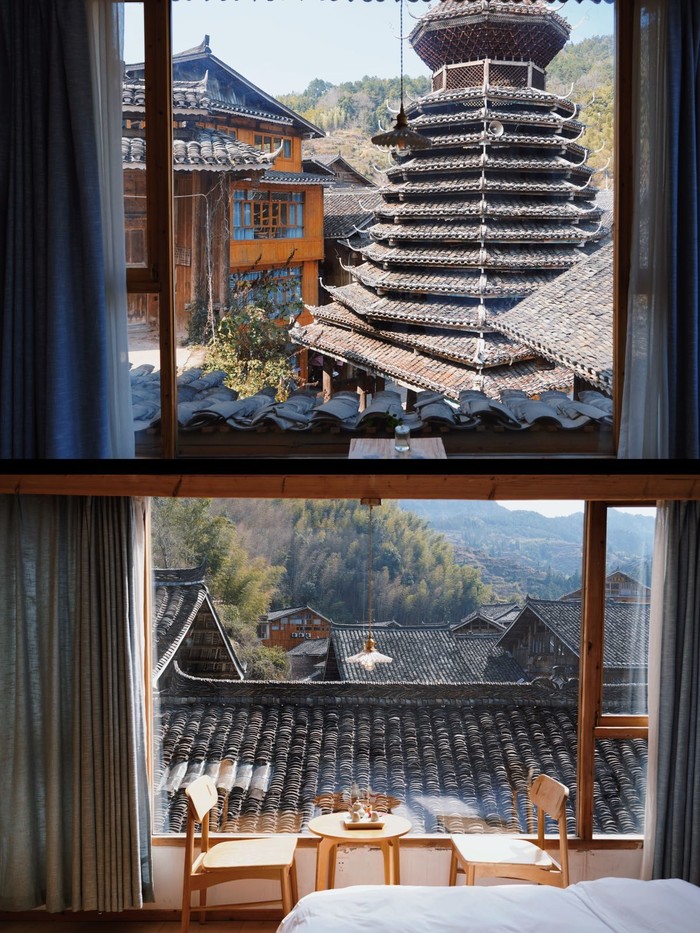 推荐住"天之逸客栈",老板人好,客栈房间的景观也很好~而且位于寨子的中心,吃饭很方便~预算拉满推荐"鼓楼全景阳台房",差点的话可以选"山景大床房"。