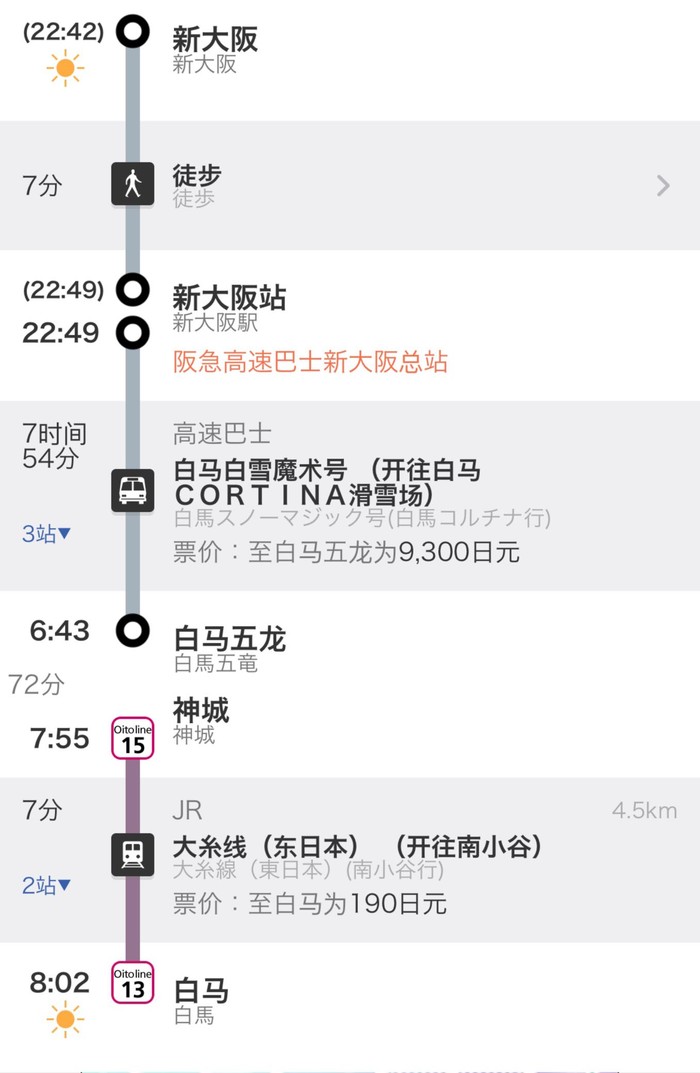 如果是公共交通的话,可以从大阪坐夜行大巴(白马白雪魔术号,开往白马CORTINA滑雪场)到白马五龙,然后从神城,坐JR大糸线到白马(总价格9490日元)。
