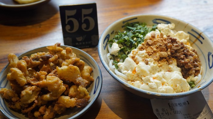 三豌豆花米线的炸包浆豆腐不错(豆腐会有分臭豆腐,包浆豆腐,灌浆小豆腐,做法分烤跟炸)