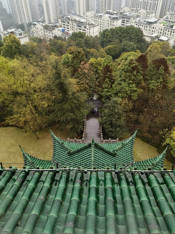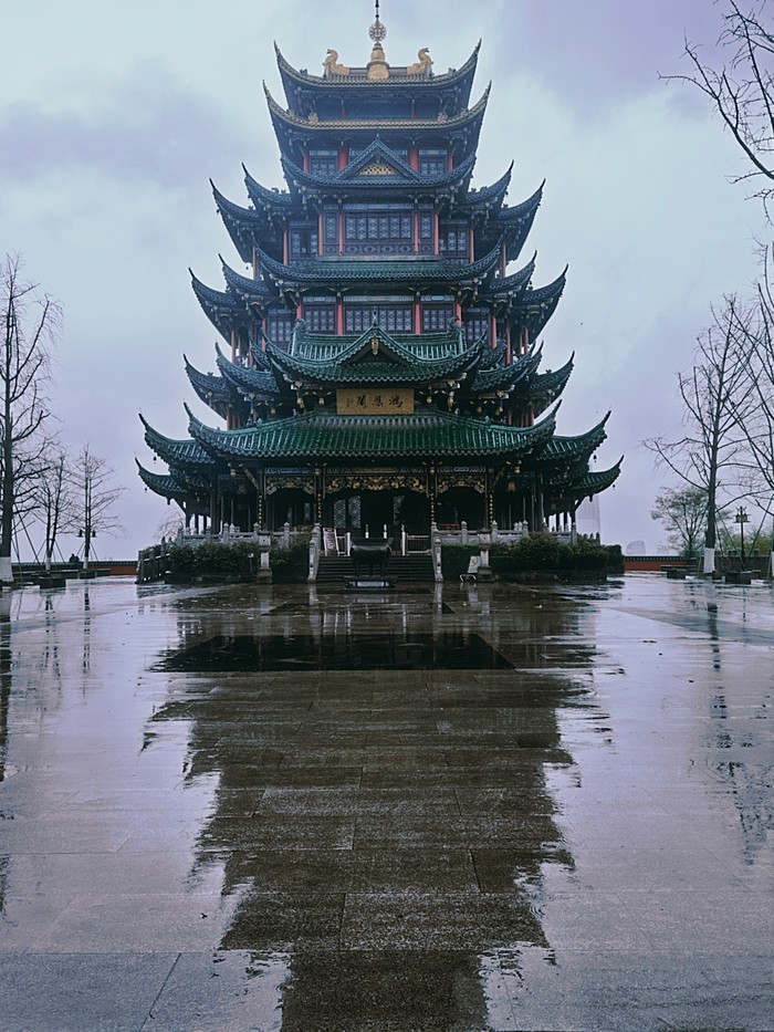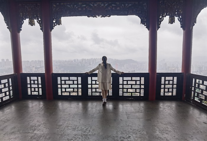 因为下雨,懒惰的我们打车去了【鸿恩寺】,从东二门进去走了一会就能抵达【鸿恩阁】。因为下雨,整个鸿恩寺森林公园格外清静,空气清新。登上鸿恩阁,俯瞰了重庆这座山城在雨中倾倒的样子。