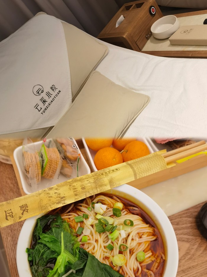 山城的第一天直接破了2万步,大众点评搜索了附近一家“云溪足道”,就在洪崖洞11楼出来的对面,迫不及待去放松。没想到大众点评团购性价比极高,按摩手法到位,结束还附赠夜宵小面。
