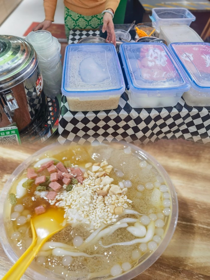 这家店门口右边的冰粉店是我此行吃下来最好吃的冰粉,手工冰粉是有气泡的,而且加了我喜欢的酒酿,里面的小圆子最好吃,Q弹和软糯兼顾得刚好。