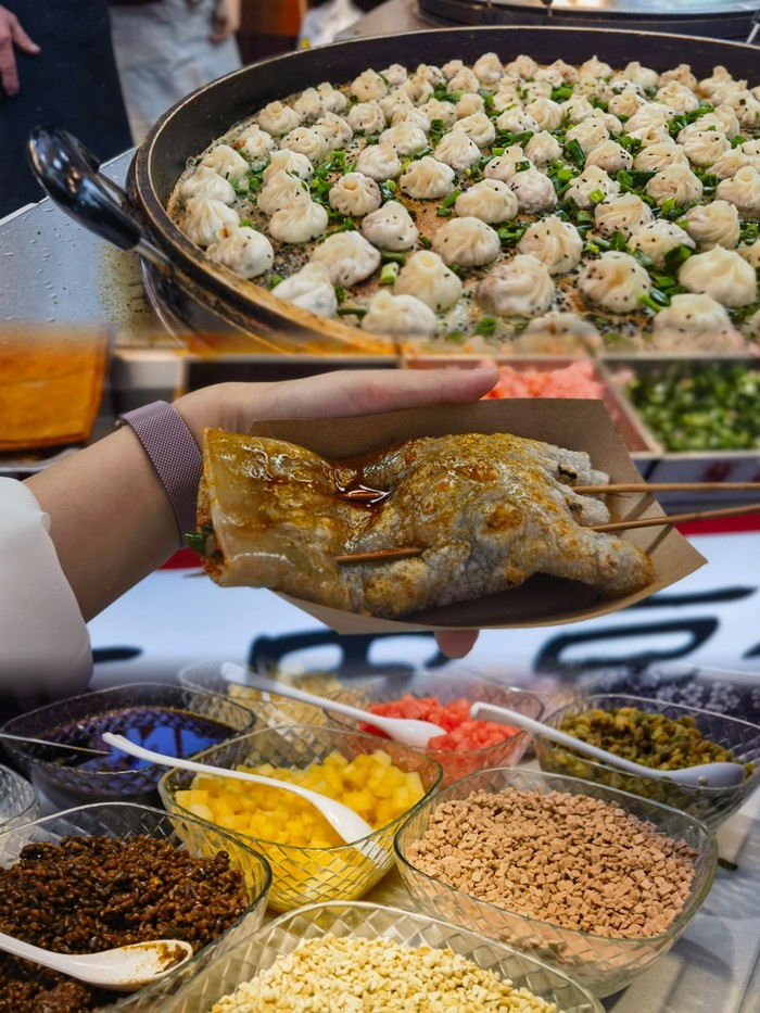 回到北站时,已经16:30,沿途步行路过了【解放碑】,【八一好吃街】,买了些小吃品尝,包括拇指生煎、烤苕皮、冰粉等等。