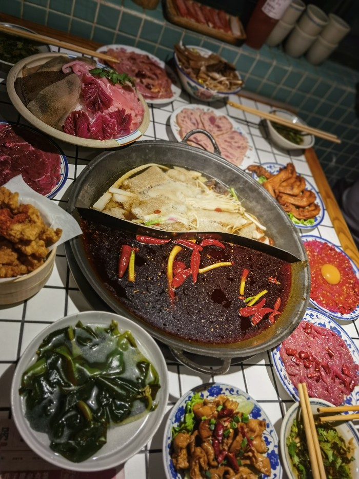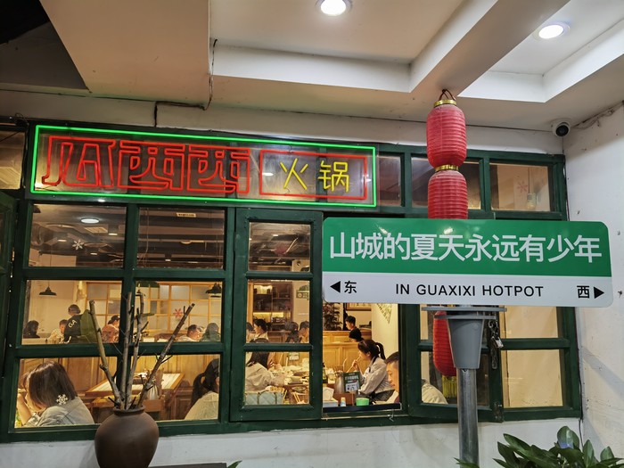 按摩结束,出来已经9:00多了,正好饿了。我们决定去刷一顿火锅。步行去了最近的“瓜西西火锅”,已经不在排队了哦。锅底真的很香,吃久了也很鲜,同时体会到重庆火锅价钱的便宜,同样的份量在上海估计得上千。