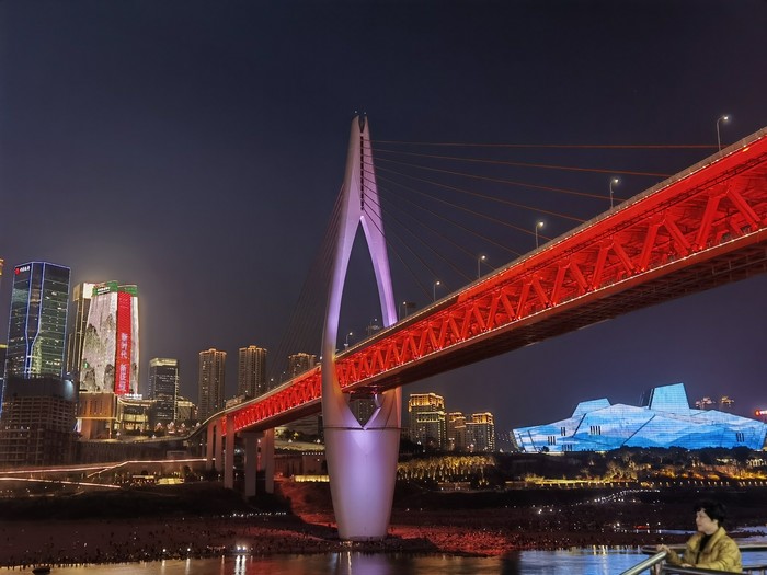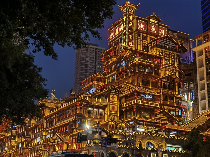 17:30左右,步行去到洪崖洞,买了一杯重庆竹筒装冰激凌,从11楼电梯向下逐层逛了一下。洪崖洞开灯时间是19:00,待开灯时对面马路已经人山人海,根本无法有好机位拍照,我随意排了几张图,就逃离了。