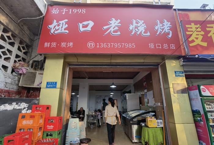 于是只在在南山拍了点照片就再次打车直去一家名为【垭口老烧烤】的店吃晚餐。他家总店就位于鲤鱼池站对面,离观音桥很近。