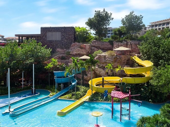 它也是亚龙湾为数不多的儿童全体验水上乐园,拥有水上滑梯、恒温泳池、9米高的“海盗船”和各种好玩的水上玩具,精彩程度不输一个小型游乐园。