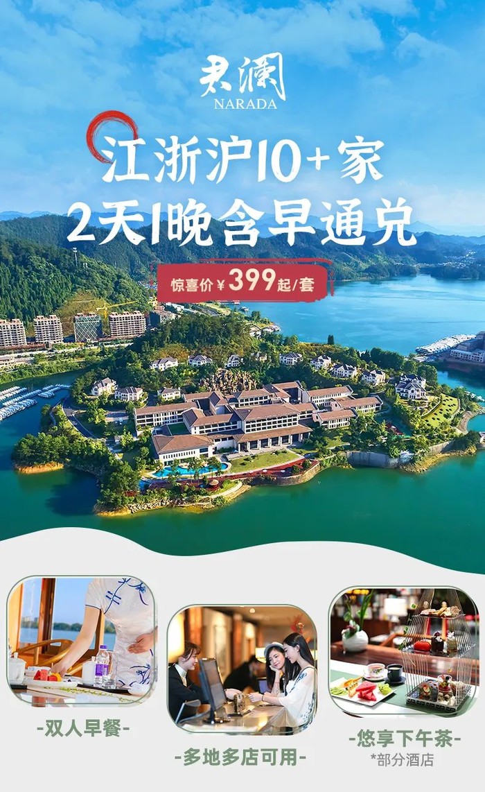 【4】江浙沪君澜10+店1晚通兑(含早),399元起