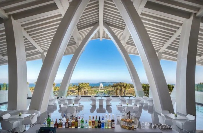 酒店楼体概念方案由英国阿特金斯打造,建筑设计由美国ZNA公司担纲,这也是海棠湾地标性建筑之一。酒店里随便找一处拍拍都挺出片的。