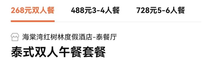 日历房2晚含早2858元,算下来立省400多元!而且套餐还额外赠送泰餐,在某点评网上团购价都要268元呢~这可是酒店享誉全国的招牌泰餐哦。