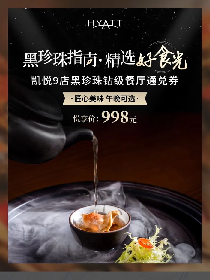 【2】凯悦酒店集团9家黑珍珠餐厅998套餐通兑,998元