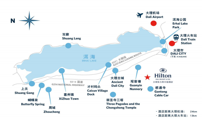 【8】大理实力希尔顿酒店2晚(含早)+B款提前预约享升房,1688元起
