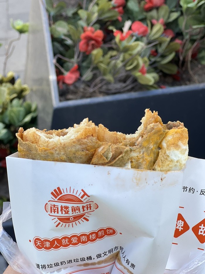 南楼煎饼也不错,胃口小的朋友建议和朋友分一套煎饼果子,我和同事下午吃完,晚饭都省了,超级管饱。