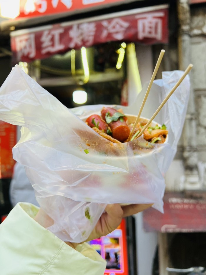 此处重点推荐光头强烤冷面,美食C位当之无愧。