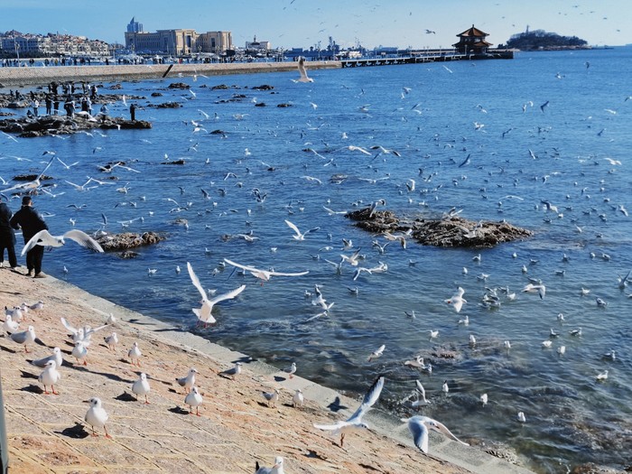 去的那天天气好,但是还是有点冷的,喂了海鸥,看了小青岛的景色之后觉得再累再冷也值了