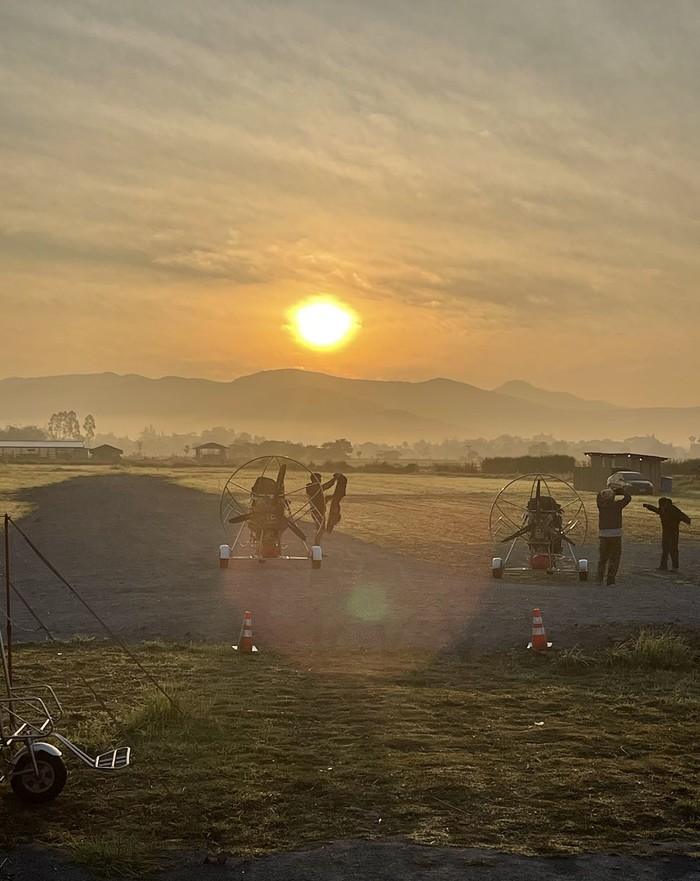 一大早约的滑翔伞,之前体验过普通的滑翔伞,这次试一下动力的,127.67新/人。订的日出场的,6点来接人,大概七点到,核对信息以后穿衣服,量体重,就可以准备飞了。