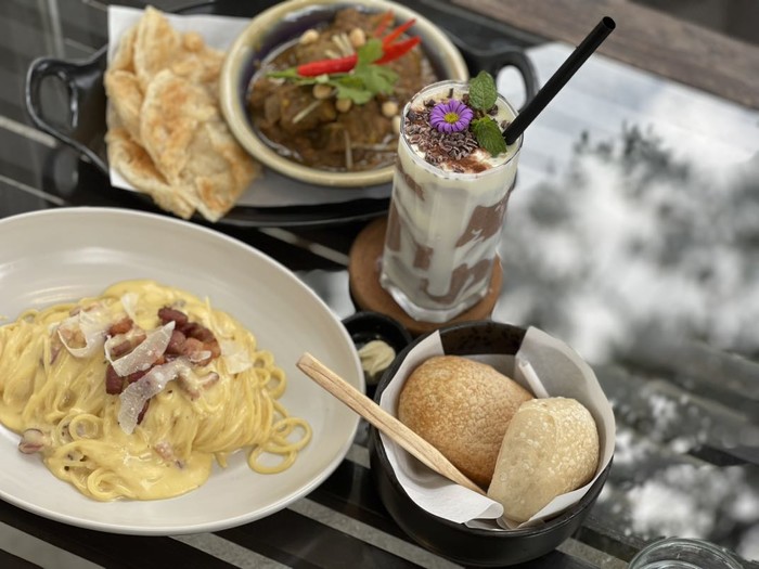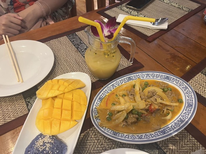 午饭去了不远的Fleur Cafe,环境是真的很好,很出片,食物的话味道就是属于还行那一类的,价格属于偏贵,两份主食700多泰铢,不是包车的话倒也没必要专门去。