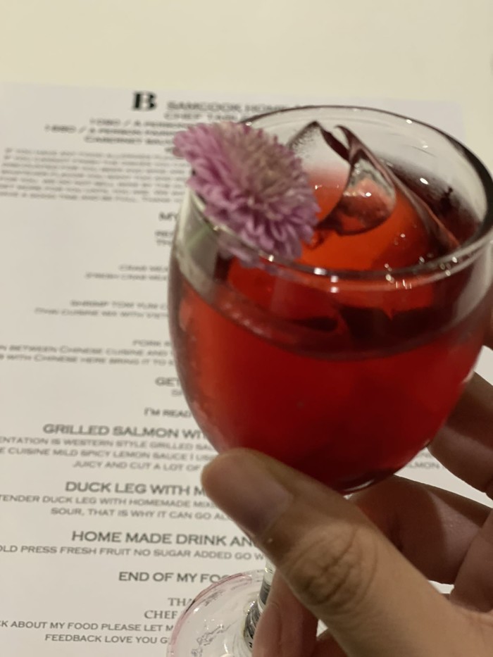 没有固定菜单,需要提前预约,我们预约了两次才预约上,环境很好,到了以后会先给welcome drink和白水,会问有没有食物敏感,接下来就等主厨上菜。