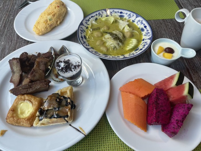 今天的项目就是出海啦,出发前浅拍一个酒店早餐,说实话比较一般。