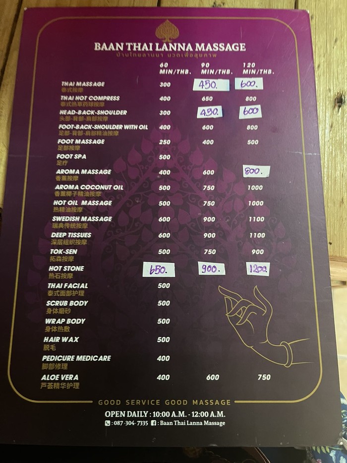 就近找了家按摩的地方,价钱非常感人,果然两个小时。我觉得按摩的地方倒是没必要跟着推荐走,我们本来想去某软件上各种推荐的很火的,但是后来发现随便路边的找一家,在谷歌上看下评分不错就可以了。