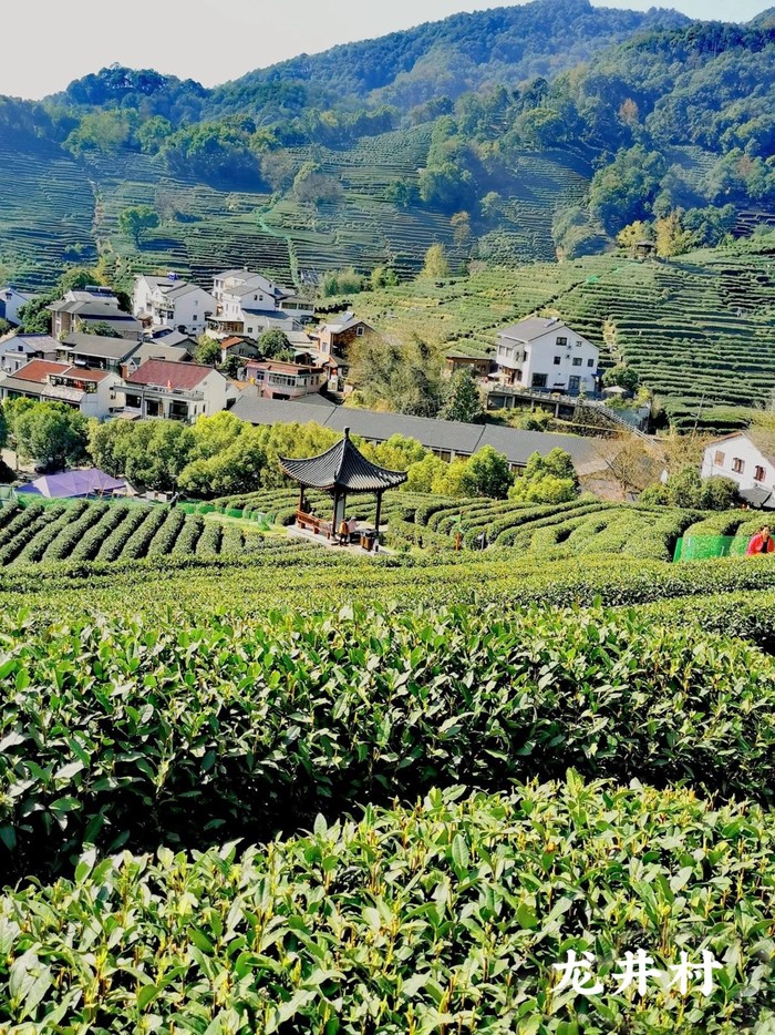 ④龙坞茶村:茶山很大、连绵不绝,层层似有烟雾,很美。从下往上爬到山顶,可远眺连片茶山。里面还有和光明寺水库,虽不大,但也为茶山增添了不少灵气