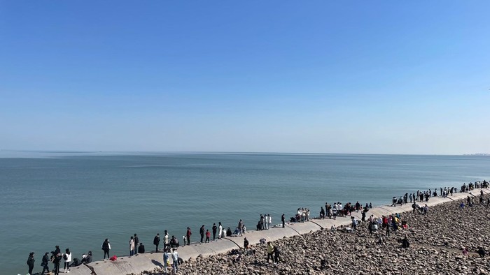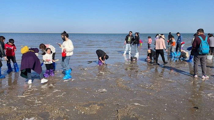 下午两点左右,直奔东疆亲海公园,提前看好潮汐时间表(公众号查询),想赶海