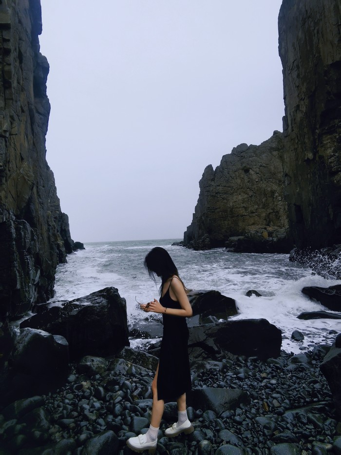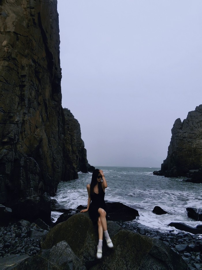 仙人井和镜沙很适合阴天去拍照,非常出片。镜沙主要都是黑色的礁石,仙人井也是礁石很多,就很适合阴郁的氛围,拍人物情绪大片。