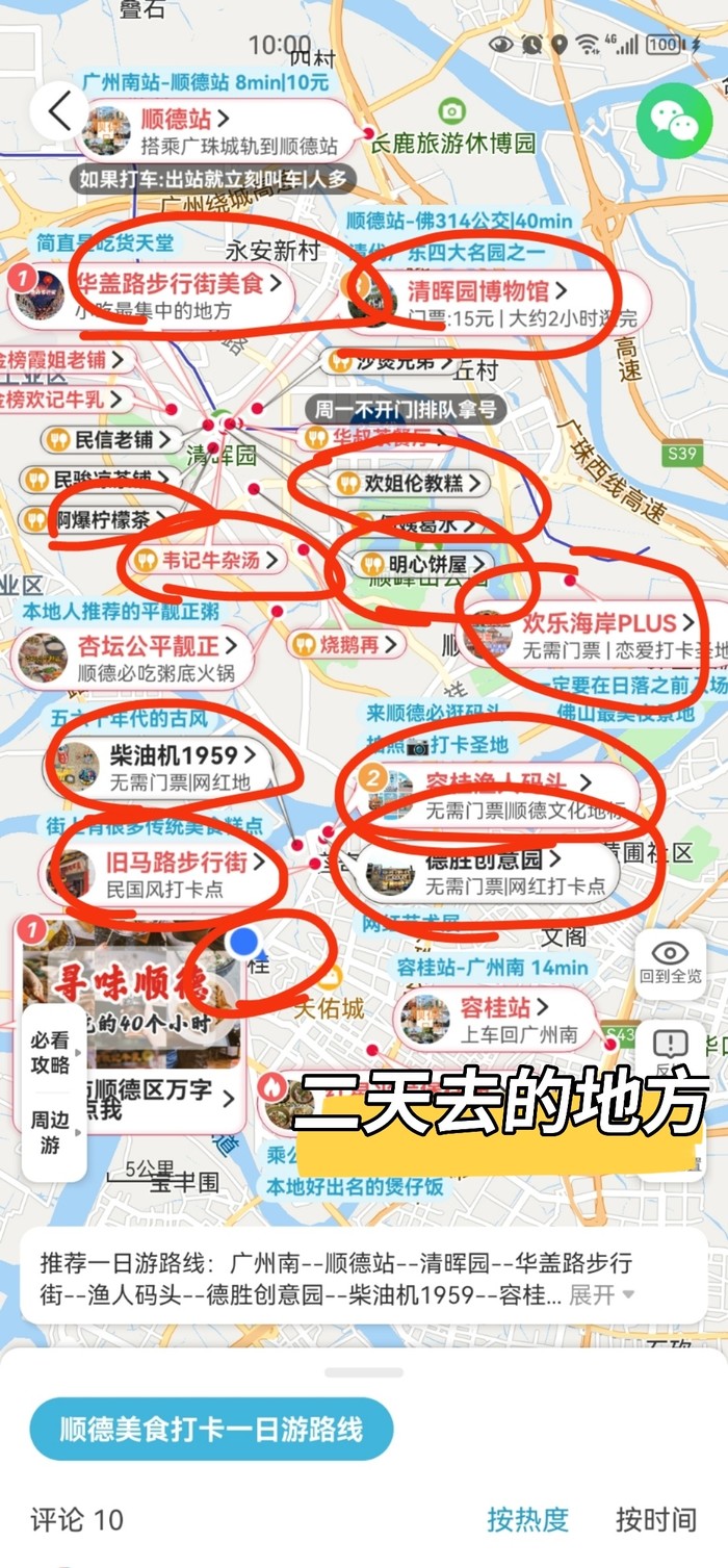 1:大良钟楼—清晖园(走路)—何姨葛水(走路)—韦记牛杂汤(走路)—华盖路步行街(东西贵别买)—酒店(坐2辆公交车到酒店)