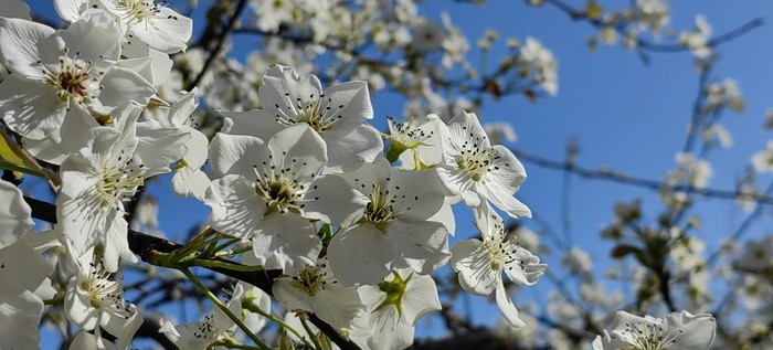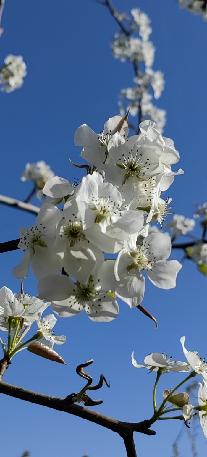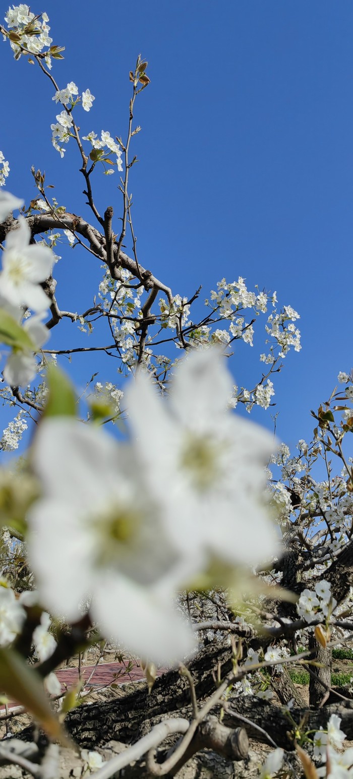又是一年清明时,每年这个时候我们都会去看沙窝的梨花。沙窝梨花和别的地方不同在于梨树的年龄,这里的梨树都是几百年的历史了,每一棵都写满沧桑。老树盘根错节的生长,花开的少,并且不会很大很肥沃,有点疏松影落空坛静,细草香闲小洞幽,何用别寻方外去,人间亦自有丹丘的感觉。