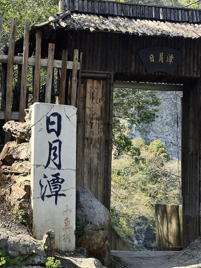 日月潭背靠石崖,面朝深坑潭水,偶尔有几缕渺渺生烟飘起,感觉像是一个隐世民居