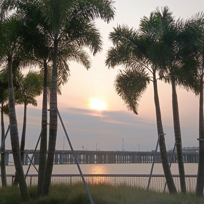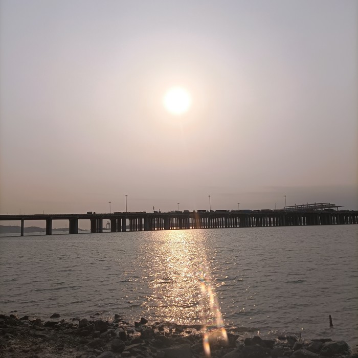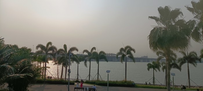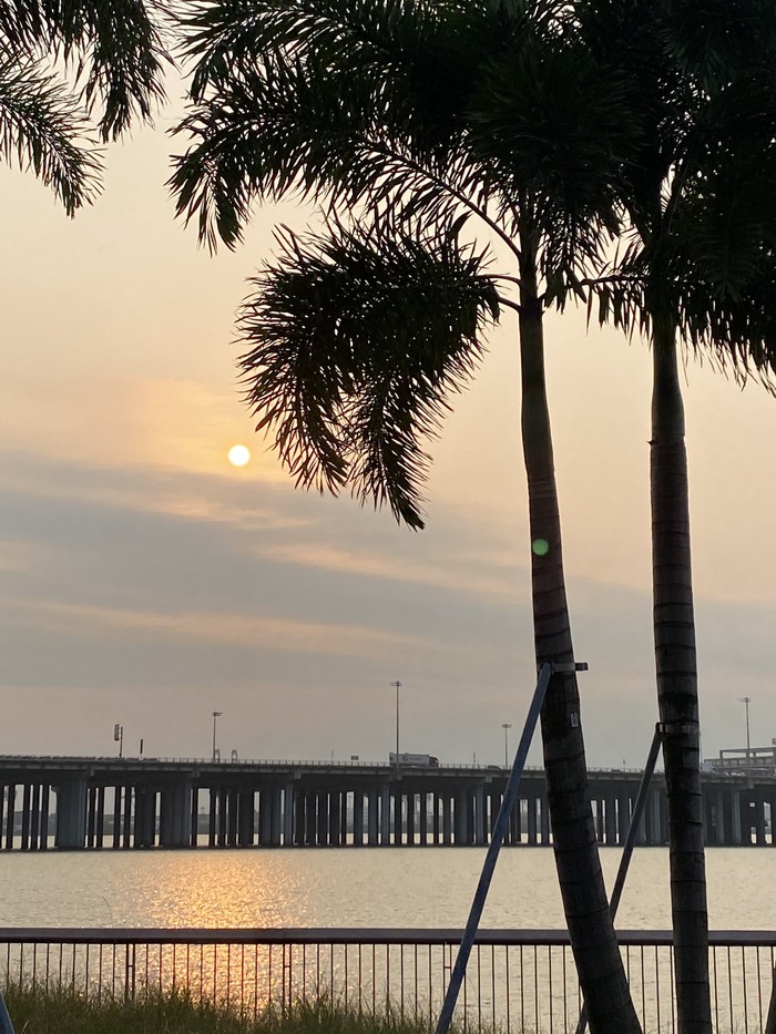 2023年4月11号的前海石公园的日落,建议收藏打卡呦,天气好可以看到日落和别人拍婚纱照的呢。