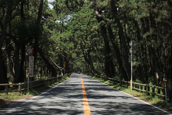 从唐津城望去,可以看到日本三大松林之一的“虹の松原“。这也是今天唐津一日游的最后一站。“虹の松原是一个长约4公里,宽约500米的松树林。唐津的第一任领主在沙丘上种植黑松树,目的是用来保护海岸线免受风浪侵袭。随着时间的推移,树枝在海风的作用下弯曲,远远望去,黑松沿着碧海白沙划出彩虹般的弧线。
