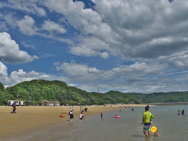天儿真的是越来越热了,所以我把行程的第一站安排在了被评选为“日本海水浴场88选”之一的“伊万里海滩”。因为这里地处内海波浪平静,所以旅途中带着小朋友的话,这里也是相当不错的选择。每年的7-8月份海滩是可以下水游泳,如果时间允许,带上帐篷和简单装备,在这里可以安排一整天呢。