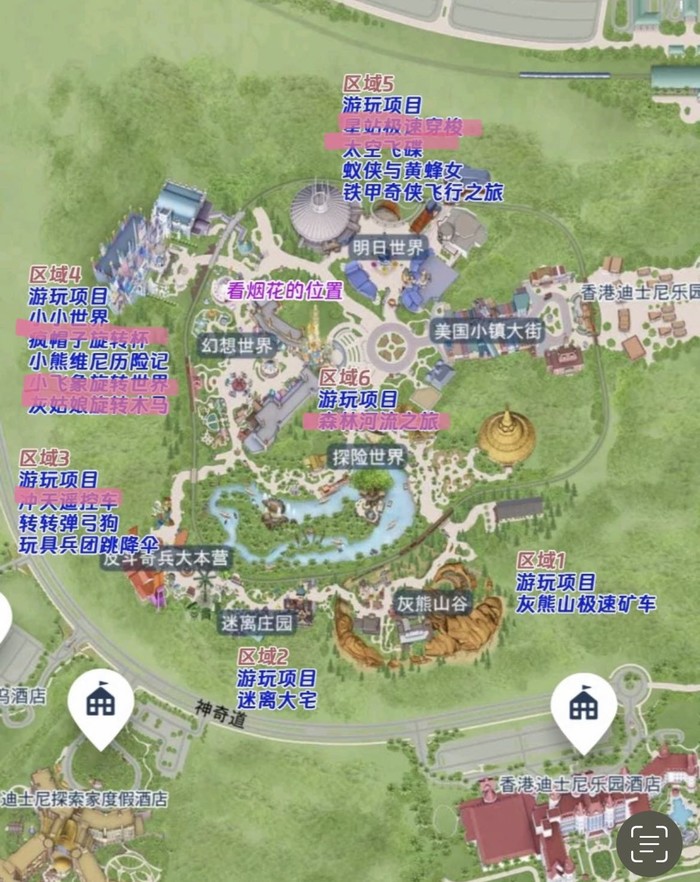 游玩计划路线:明日世界—幻想世界—反斗奇兵—迷离庄—灰熊山谷—探险世界