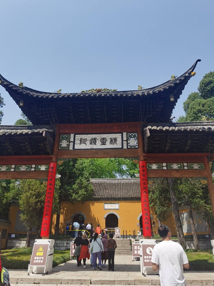 走出瘦西湖北门,大明寺就在附近。大明寺因初建于南朝刘宋孝武帝大明年间(457-464年)而得名。唐朝鉴真法师任大明寺住持,使大明寺成为中日佛教文物关系史上的重要古刹。沿着数百级舒缓石阶登上大明寺前的广场,迎面是一座庄严典雅的牌楼。中门之上面南有篆书“栖灵遗址”四字,大明寺的山门殿兼作天王殿,正门上额“大明寺”三字是中国佛教协会会长赵朴初所书。
