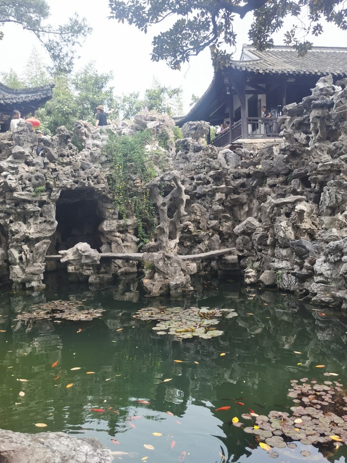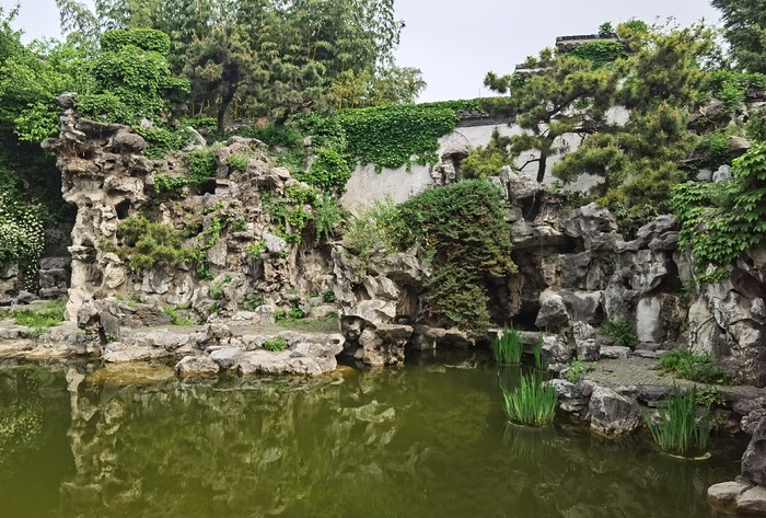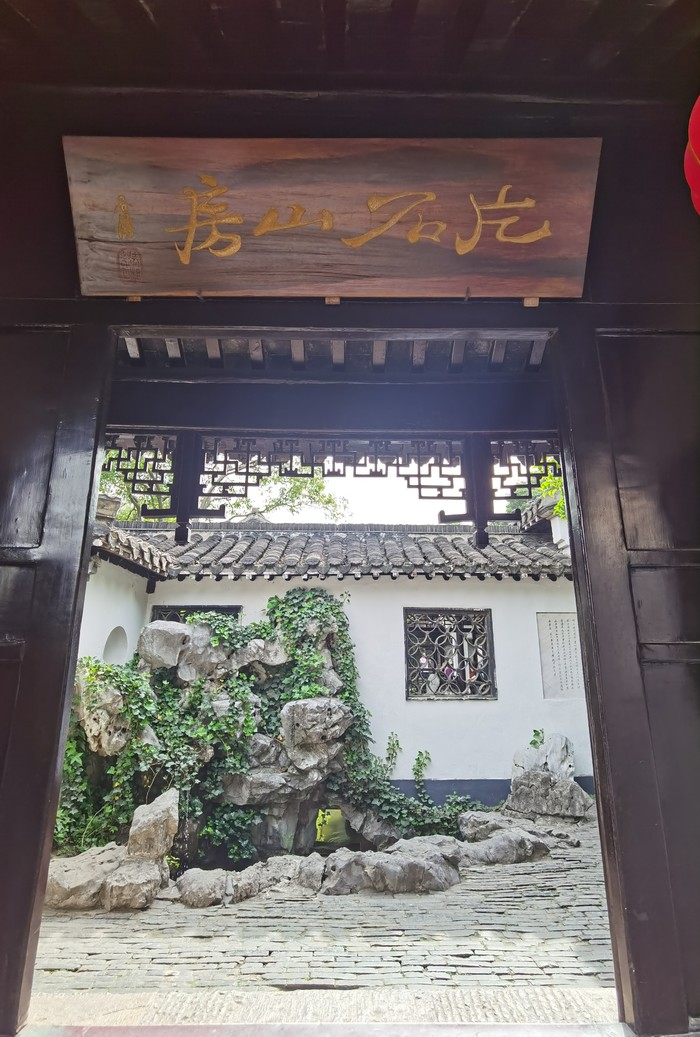 水中月亮是片石山房中假山丘壑处的一道奇观。白天池水中映有一轮明月,且随着观者视角变化有阴晴圆缺之异。据说是叠石后的墙上一处孔隙,随视角不同被叠石遮掩。我想,无论我们有没有看到月亮或者说看到什么样的月亮,都是自己心中的月亮。