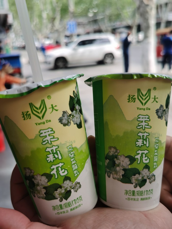 从何园出来,买了网红的扬大酸奶,樱花、芒果、青柠、燕麦、草莓、原味,最喜欢的还是茉莉花的。