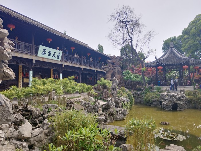 酒店位置很好,就在何园对面,下楼就是早茶店,旁边餐馆众多,大潮淮还是不错的一家。晚餐后散步,走到蒋家桥锅贴店,笋肉锅贴、三丁包、萝卜丝包都很好吃。