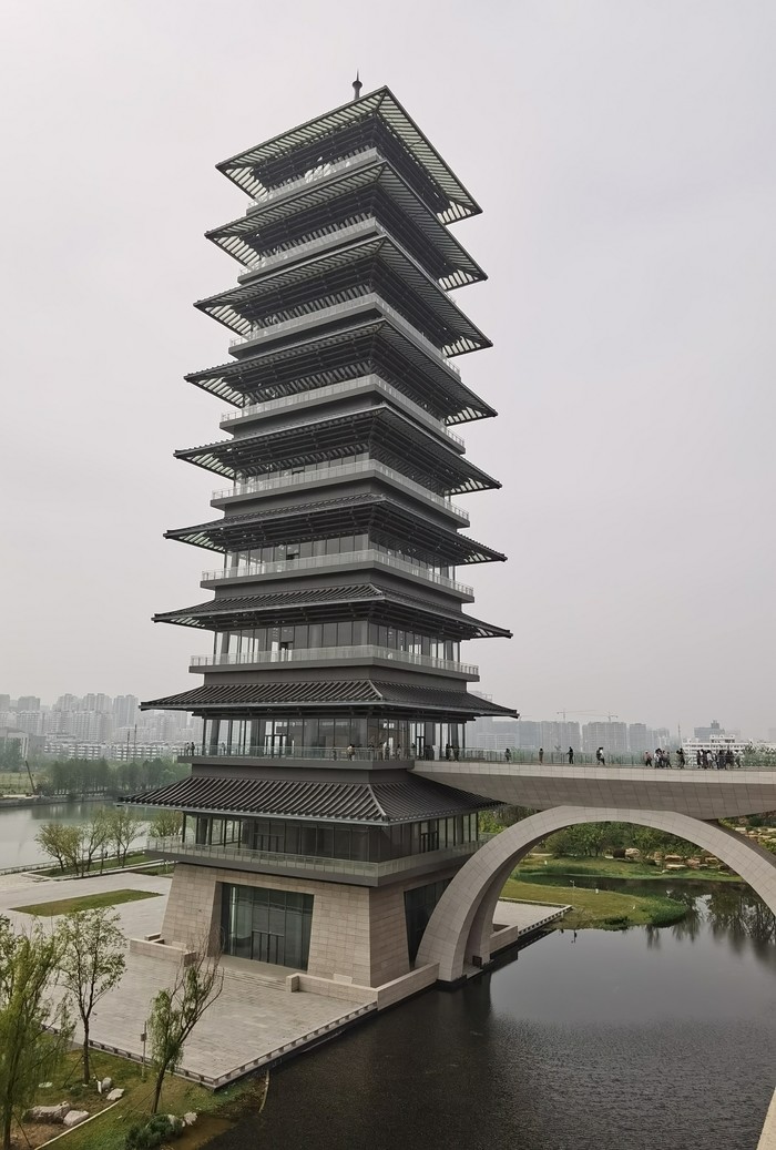 大运河博物馆整体馆型采用了巨型船只造型,同时融入风帆元素,就像运河边一艘即将扬帆起航的巨船。大运塔则以唐塔的风格设计,重现唐风古韵。