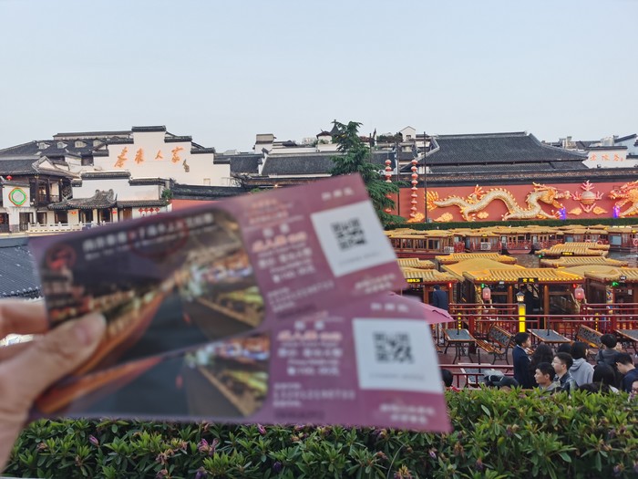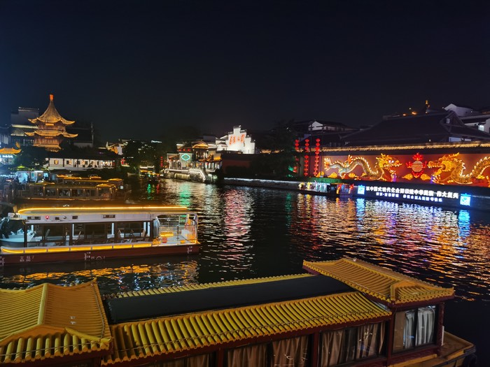 晚上早早排队买船票,果然不负所望。登上泊秦淮号,开启秦淮夜游。