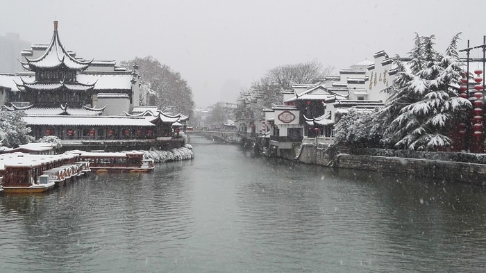 回想起第一次来南京,是2018年1月,下着大暴雪,白雪皑皑的秦淮河,另有一番朦胧诗意。我那篇游记也被网站列为精华帖,再放一张当年风雪金陵的照片怀念一下吧。