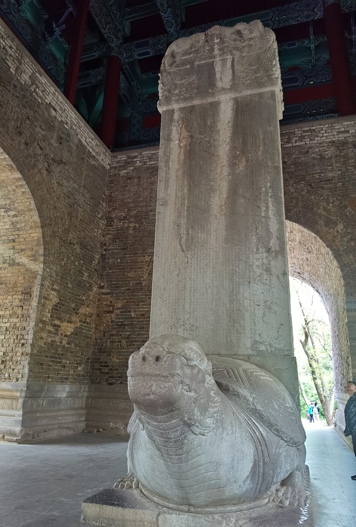 进入明孝陵主体建筑,文武方门是陵宫的第一道门。碑殿中石碑上书“治隆唐宋”四个鎏金大字,为康熙皇帝手书,并交由曹雪芹的祖父、当时的江宁织造郎中曹寅刻立。
