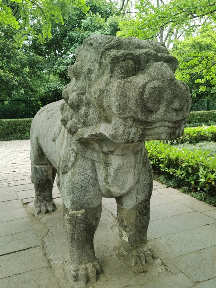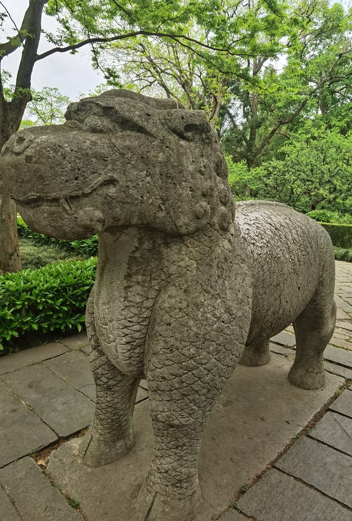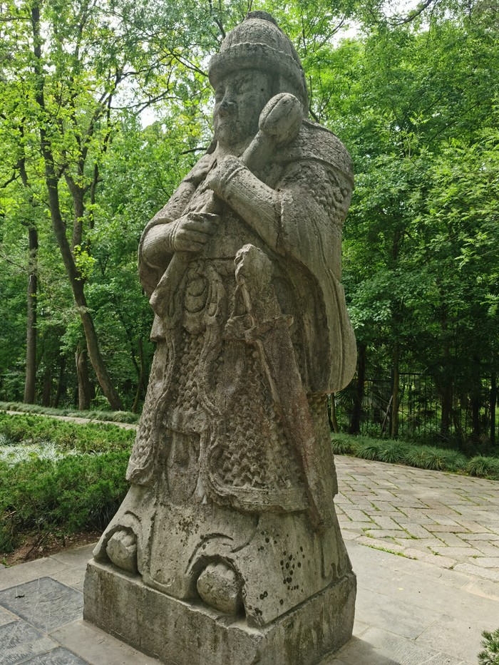翁仲路是孝陵神道的第二段,依次排列一对望柱、两对武将和两对文臣。石人石兽体型巨大,是明代石刻的艺术珍品。