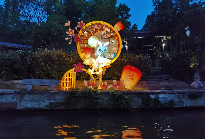 晚上来到夫子庙,本想乘船夜游秦淮河。可是排队的人超多,已经限流了。爸妈去看灯会,我便顺着人群向前走。