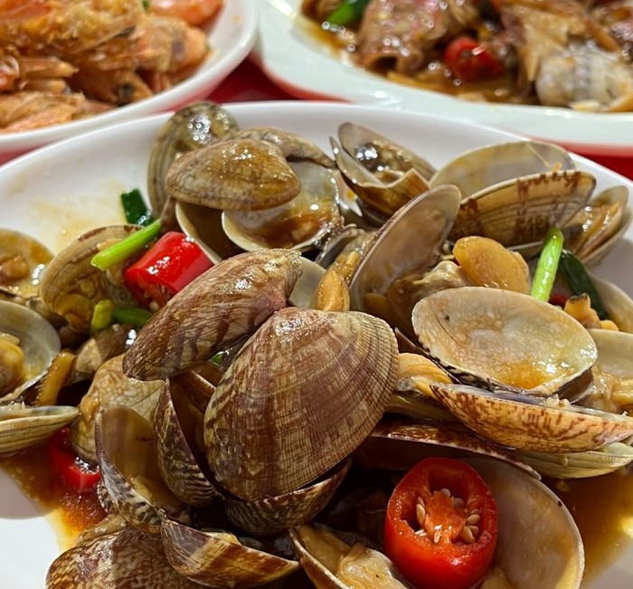 金线莲鲍鱼土猪肉汤,汤头晶莹剔透,喝起来非常清爽,炖盅里的鲍鱼还挺大颗的。